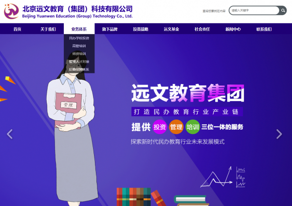 北京遠(yuǎn)文教育(集團(tuán))科技有限公司是一家以開放平臺(tái)為主體,以義務(wù)教育階段學(xué)校投資和培訓(xùn)教育為載體,打造民辦教育行業(yè)產(chǎn)業(yè)鏈,在全國范圍內(nèi)為民辦學(xué)校提供投資、管理、培訓(xùn)三位一體的服務(wù),探索新時(shí)代民辦教育行業(yè)未來發(fā)展模式的教育科技公司。