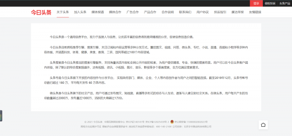 “你關心的,才是頭條”是今日頭條平臺的廣告語,今日頭條平臺是張一鳴先生于2012你那推出的一款個性化推薦引擎軟件,它能夠為平臺的用戶提供最有價值的各種信息。如圖所示是進同日頭條官網(wǎng)對自己平臺介紹的部分內(nèi)容: