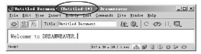 每次進(jìn)入Dreweaver時(shí),總是自動打開一個(gè)空白文檔,即可新建一個(gè)網(wǎng)頁。和在Word中的操作一樣,在文檔窗口內(nèi)可以直接輸入文本,如圖所示