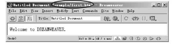 對照圖可以發(fā)現(xiàn),網(wǎng)頁沒有存盤時(shí),文檔窗口標(biāo)題欄的圓括號內(nèi)顯示的文件。而一旦網(wǎng)頁存了盤,則文檔窗口標(biāo)題欄的圓括號內(nèi)就顯示了當(dāng)前網(wǎng)頁的文件名(firsthtn)及其所在的文件夾(example)。