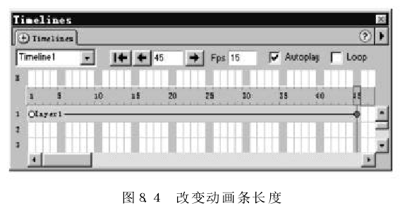 (9) 通過預(yù)覽動畫,發(fā)現(xiàn)小鳥的飛行速度太快了,可將“Fos" 中 的每秒幀數(shù)從15改為8,這樣可以降低小鳥的飛行速度。