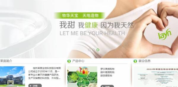 桂林*茵生物科技股份有限公司成立于2000年11月,是一家專業(yè)從事天然健康產(chǎn)品研發(fā)、生產(chǎn)及銷售的科技型、外向型民營企業(yè)。公司在植物提取行業(yè)具有20多年的經(jīng)驗,是全球植物提取行業(yè)的領軍企業(yè),也是國內(nèi)植物提取行業(yè)的第一家上市公司。公司致力于打造全球領先的天然健康產(chǎn)品平臺,提高人們健康水平,讓生命更美好!