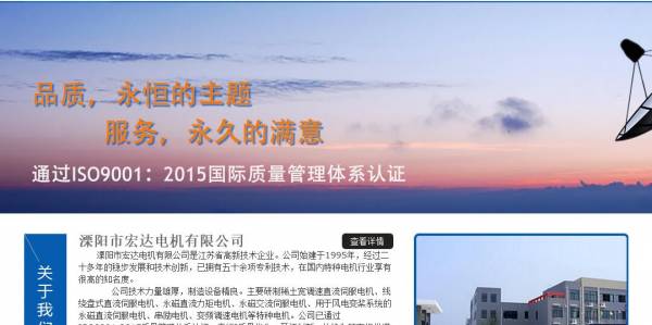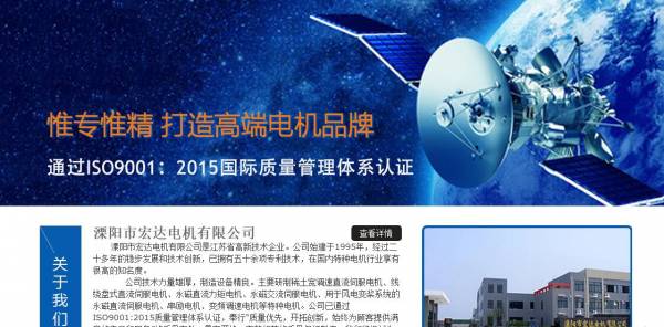 溧陽市宏*電機有限公司選用我司企業(yè)機電設(shè)備品行業(yè)的網(wǎng)站優(yōu)化產(chǎn)品,其SEO關(guān)鍵詞有 溧陽宏達電機、溧陽伺服電動機、永磁伺服電動機、永磁直流電動機、永磁交流伺服電機、稀土寬調(diào)速直流伺服電動測速機組、線繞盤式直流伺服電動機、永磁直流力矩電機、永磁直流測速發(fā)電機、永磁交流伺服電動機、風電變槳專用永磁直流伺服電動機等產(chǎn)品。其特點是用很合適的展示方式、展示效果、站點框架,把客戶及其用戶很關(guān)心的問題突出表現(xiàn);并以簡潔明朗的設(shè)計風格,清晰展現(xiàn)公司水平實力,確保一秒抓住目標用戶眼球,給用戶留下良好的第一印象。溧陽市宏*電機有限公司成立于2000年,是經(jīng)溧陽市市場監(jiān)督管理局審核的有資質(zhì)的公司,其統(tǒng)一社會信用代碼:9132048172**895034。公司地址:江蘇省溧陽市溧城鎮(zhèn)北門東路86號。