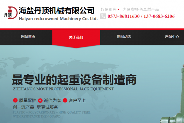海鹽丹頂機械有限公司選用我司企業(yè)寵物用品網(wǎng)站案例,其網(wǎng)站建設(shè)的特點是千斤頂、五金工具、汽車零配件、紙制品、塑料制品(不含廢舊塑料)制造、加工。為企業(yè)進行戰(zhàn)略規(guī)劃,品牌塑造、產(chǎn)品市場定位,搜索引擎推廣,媒體資源推廣,網(wǎng)站優(yōu)化,軟文推廣等全網(wǎng)營銷業(yè)務(wù)。海鹽丹頂機械有限公司成立于2008年,是經(jīng)海鹽市場監(jiān)督管理局審核的有資質(zhì)的公司,其統(tǒng)一社會信用代碼:91330424676158879W。公司地址:浙江省嘉興市海鹽縣西塘橋街道海灣大道1487號。