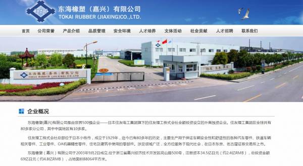 東*橡塑(嘉興)有限公司是由世界500強(qiáng)企業(yè)——日本住友電工集團(tuán)旗下的住友理工株式會社全額投資設(shè)立的外商獨資企業(yè)。住友理工集團(tuán)在全球共有80多家分公司,其中中國地區(qū)有10多家。住友理工株式會社總部位于日本小牧市,成立于1929年,迄今已有80多年的歷史,主要生產(chǎn)用于保證車輛安全性和舒適性的各種汽車零件、鐵道車輛相關(guān)零件、工業(yè)零件、OA機(jī)器精密零件、住宅及建筑中使用的零部件。涉足領(lǐng)域廣泛,全方位服務(wù)于現(xiàn)代社會,在日本東京、名古屋證券交易所上市。