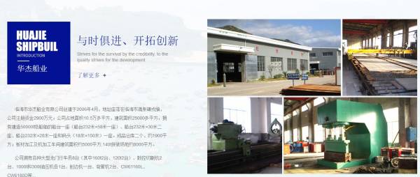臨海市華*船業(yè)有限公司地址座落在臨海市涌泉鎮(zhèn)戎旗,公司注冊(cè)資金2900萬元;公司占地面積10.5萬多平方,建筑面積25000多平方,擁有建造50000噸級(jí)船舶的船臺(tái)一座(船臺(tái)232米×58米一座)、船臺(tái)232米×30米二座、船臺(tái)232米×28米一座和碼頭(18米×150米)一座。成品倉庫二個(gè),約1900平方;板材加工及機(jī)加工車間建筑面積約5000平方;140噸拼裝場地約8000平方.
