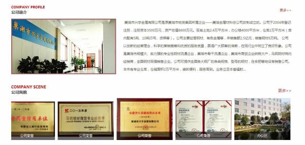 巢湖市*宇金屬有限公司選用我司企業(yè)金屬材料行業(yè)的網(wǎng)站優(yōu)化產(chǎn)品,其SEO關(guān)鍵詞有 巢湖市*宇金屬有限公司。其特點(diǎn)是用很合適的展示方式、展示效果、站點(diǎn)框架,把客戶(hù)及其用戶(hù)很關(guān)心的問(wèn)題突出表現(xiàn);并以簡(jiǎn)潔明朗的設(shè)計(jì)風(fēng)格,清晰展現(xiàn)公司水平實(shí)力,確保一秒抓住目標(biāo)用戶(hù)眼球,給用戶(hù)留下良好的第一印象。巢湖市*宇金屬有限公司成立于2004年,是經(jīng)巢湖市市場(chǎng)監(jiān)督管理局審核的有資質(zhì)的公司,其統(tǒng)一社會(huì)信用代碼:91340181756841**7B。公司地址:巢湖市向陽(yáng)南路與亞父路交叉口居巢經(jīng)濟(jì)開(kāi)發(fā)區(qū)金屬樓。