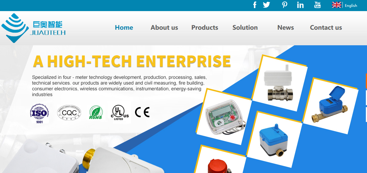 Hangzhou Juao intelligent technology co.,ltd was founded in 2006, located in Hangzhou,Zhejiang,China, specialised in researching and development high-tech ultrasonic meters which include ultrasonic water meter,ultrasonic heat meter. IC card smart meter, RF card smart meter, CPU card smart meter, non-magnetic electronic water meter; IC card smart gas meter , Ultrasonic heat meter; time valve table; s M-BUS, wireless remote meter reading system, and other products widely used in civilian measurement, fire buildings, consumer electronics, wireless communications, instrumentation, , And with a number of large and medium-sized electronic enterprises to establish a strategic business partnership