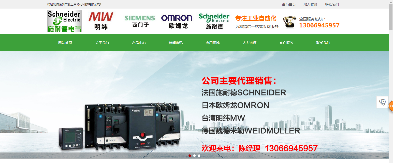 深圳市奧邁自動(dòng)化科技有限公司是一家以工業(yè)自動(dòng)化為主營(yíng),融科、工、貿(mào)于一體,專業(yè)從事工業(yè)自動(dòng)化工程項(xiàng)目設(shè)計(jì)、安裝、調(diào)試等服務(wù)和代理銷售各類進(jìn)口名牌電氣及自動(dòng)化產(chǎn)品的民營(yíng)高新技術(shù)企業(yè)。是國(guó)內(nèi)規(guī)模最大的電氣產(chǎn)品分銷商及工業(yè)自動(dòng)化系統(tǒng)集成商。