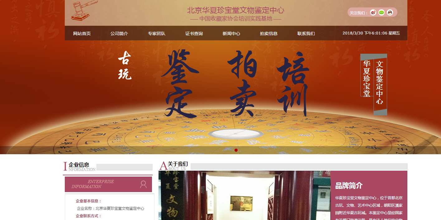 海洋網(wǎng)絡(luò)網(wǎng)站建設(shè)從2018年開始與北京華夏珍寶堂文物鑒定中心深度合作,幫助北京華夏珍寶堂文物鑒定中心設(shè)計網(wǎng)站及開發(fā)網(wǎng)站多次網(wǎng)站平臺,此項目為2018年北京華夏珍寶堂文物鑒定中心新版官方網(wǎng)站。