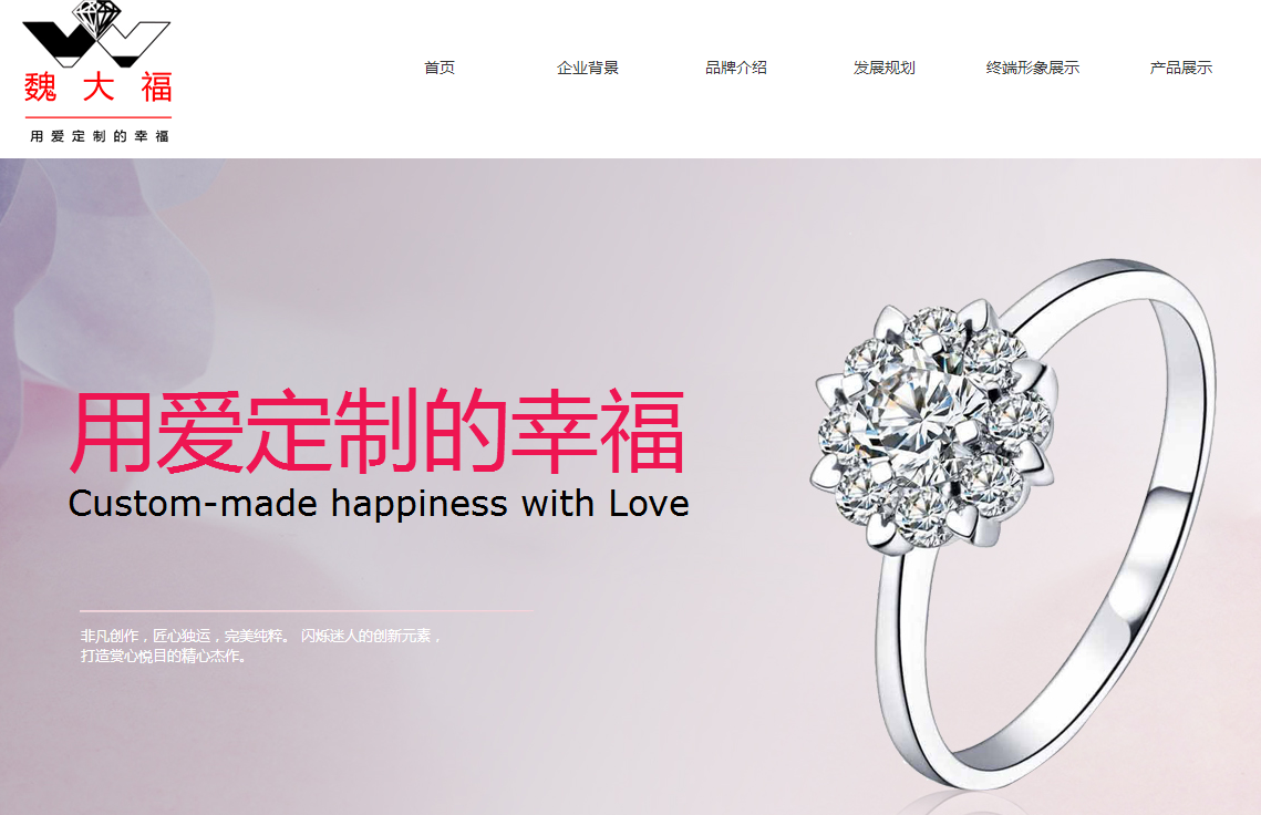 海洋網(wǎng)絡(luò)從2018年開(kāi)始與魏大福珠寶簽約網(wǎng)站建設(shè),幫助魏大福珠寶 網(wǎng)站設(shè)計(jì)及開(kāi)發(fā)網(wǎng)站多次網(wǎng)站平臺(tái),此項(xiàng)目為2018年 魏大福珠寶新版官方網(wǎng)站。