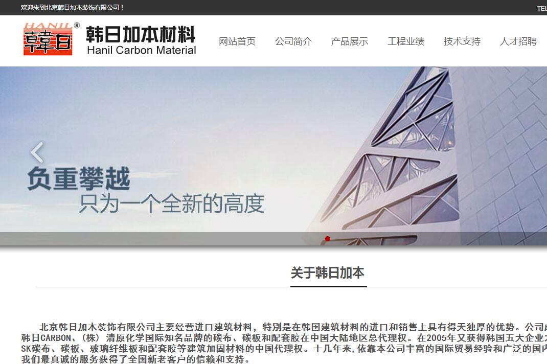 北京韓日加本裝飾有限公司主要經(jīng)營進口建筑材料,特別是在韓國建筑材料的進口和銷售上具有得天獨厚的優(yōu)勢。公司成立以來,擁有(株)韓日CARBON、(株) 清原化學國際知名品牌的碳布、碳板和配套膠在中國大陸地區(qū)總代理權(quán)。在2005年又獲得韓國五大企業(yè)之一(株) SK公司的SK碳布、碳板、玻璃纖維板和配套膠等建筑加固材料的中國代理權(quán)。十幾年來,依靠本公司豐富的國際貿(mào)易經(jīng)驗和廣泛的國內(nèi)銷售渠道,并通過我們最真誠的服務(wù)獲得了全國新老客戶的信賴和支持。